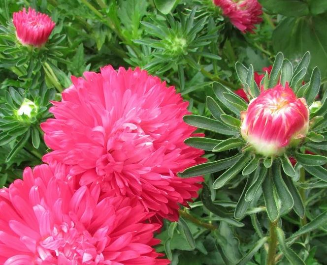 Семена астры «Красный ковер» превращается в компактное растение. Высота взрослого кустика не превышает 20 см. Семена астры «Красный ковер высеваются во второй половине февраля. Необходимо сделать парник с температурой до 20 градусов. Тогда первые всходы появятся через одну-две недели. Рассаду астры «Красный ковер» высаживают в открытый грунт начиная с середины мая. Место выбирают солнечное с дренированной почвой. Первые бутоны раскрываются с июле. До конца осени или до первых заморозков куст усеян пушистыми цветами алого цвета. Диаметр соцветий достигает 10 см.