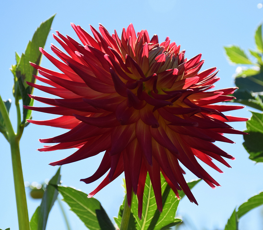 Георгина полукактусовая эрчин - это великолепное растение с бордово-красными цветками, которые будут радовать ваш взгляд с июня по сентябрь. Ее высота достигает 90 см, а размер цветка составляет 13 см. Листья зеленые как весной, так и летом, создавая яркий контраст с яркими цветами. Эта георгина предпочитает солнечные места и песчаные почвы, идеально подходит для посадки на газоне, в групповых или одиночных посадках.