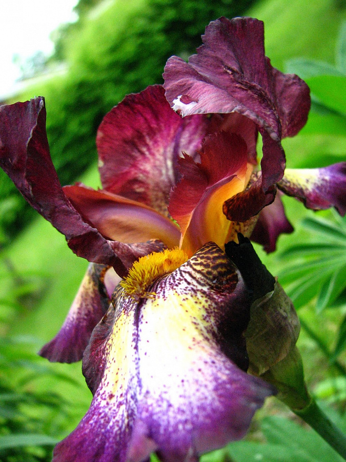 • Окраска цветка : теёмно-бордовый с жёлтым пятном на бородке