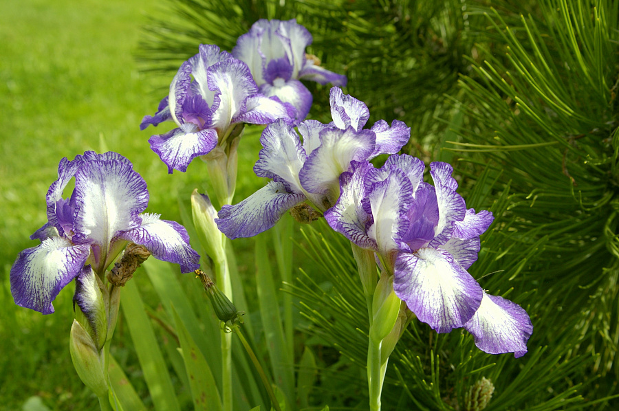 Вид карликовых — высота 20-25 сантиметров. Расцветает в конце мая — начале июня. Цветы от фиолетовых с белыми прожилками до белых с фиолетовой окантовкой по краю, с чётким контрастом цветов. Семенами не размножается.