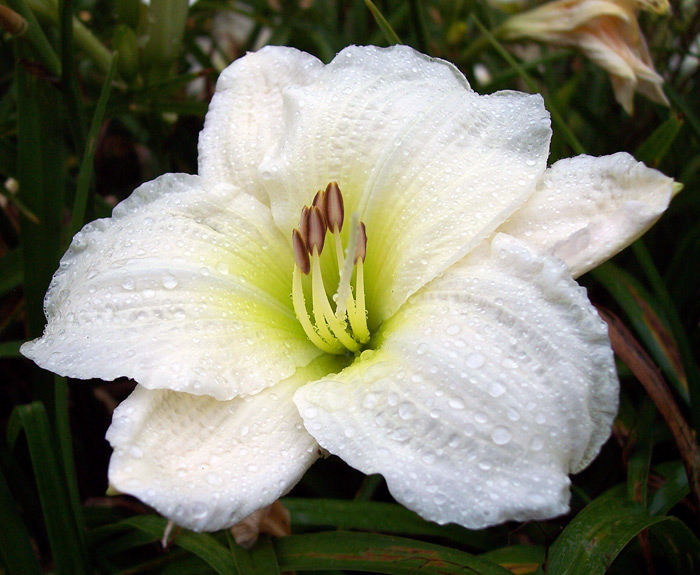 • обильное и продолжительное цветение. Распустившиеся бутоны имеют белоснежные лепестки с немного гофрированным краем и атласным блеском, горлышко при этом нежно-зеленного оттенка. Лилейник Джентл Шеферд прост в уходе, что нисколько не уменьшает красоты этого растения. Взрослый куст имеет обильную листву и множество цветоносов, что создает ароматное цветочное облако.